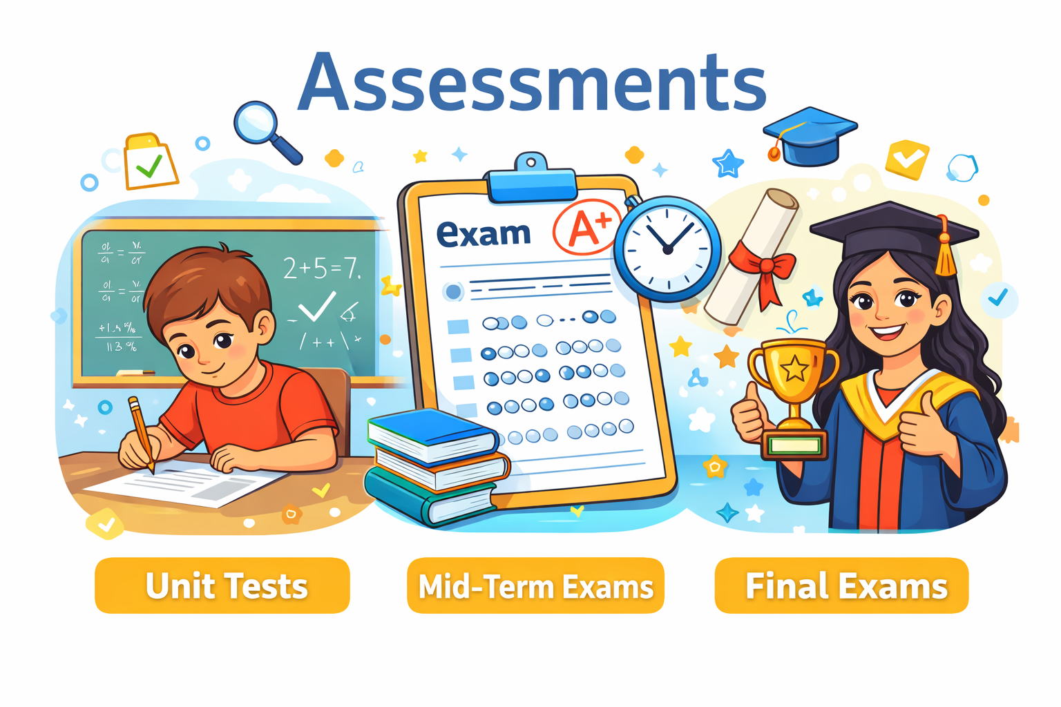 Year-end examinations to assess complete academic performance.
